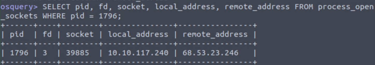 Maintenant que nous savons qu’il y a une connexion suspecte, nous allons utiliser l’outil osqueryi :